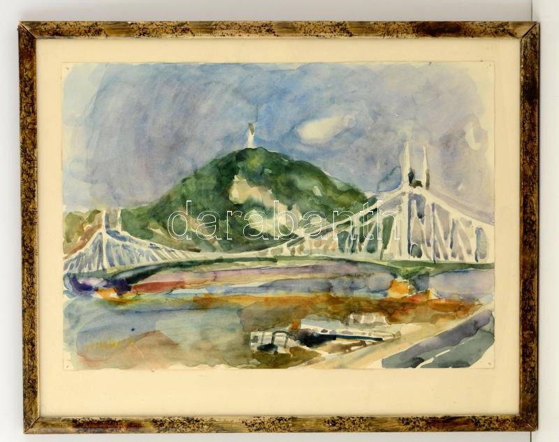 Somlai Vilma (1938-2007): Szabadság híd. Akvarell, papír, jelzett, üve...