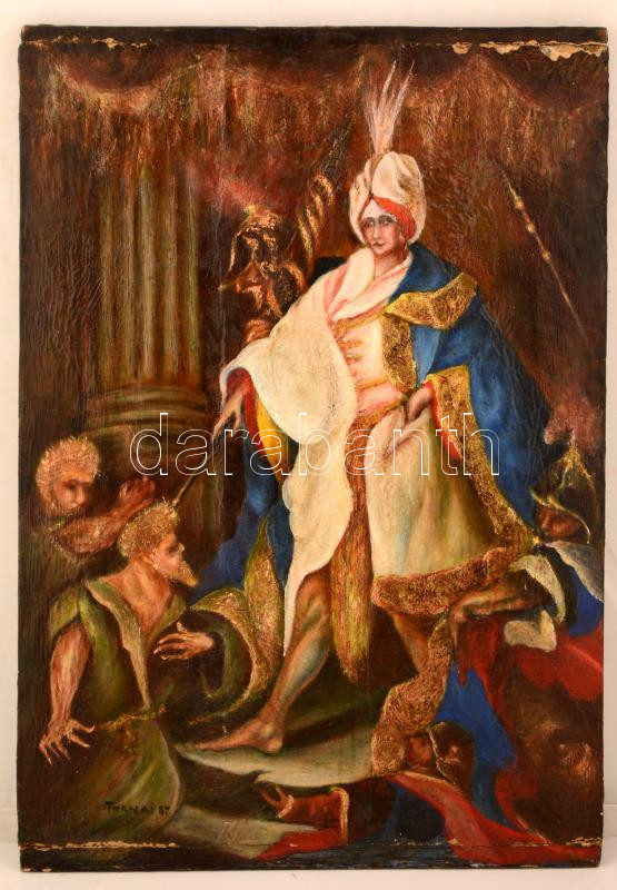 Tornai jelzéssel: Az uralkodó. Olaj, fatábla, sérült, 67×49 cm