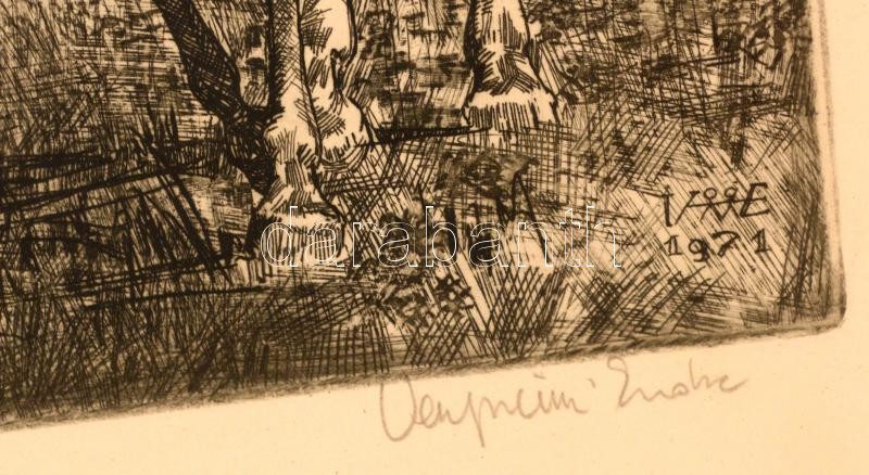 Veszprémi Endre (1925-): Határőr járőrlovasokkal. Rézkarc, papír, jelz...