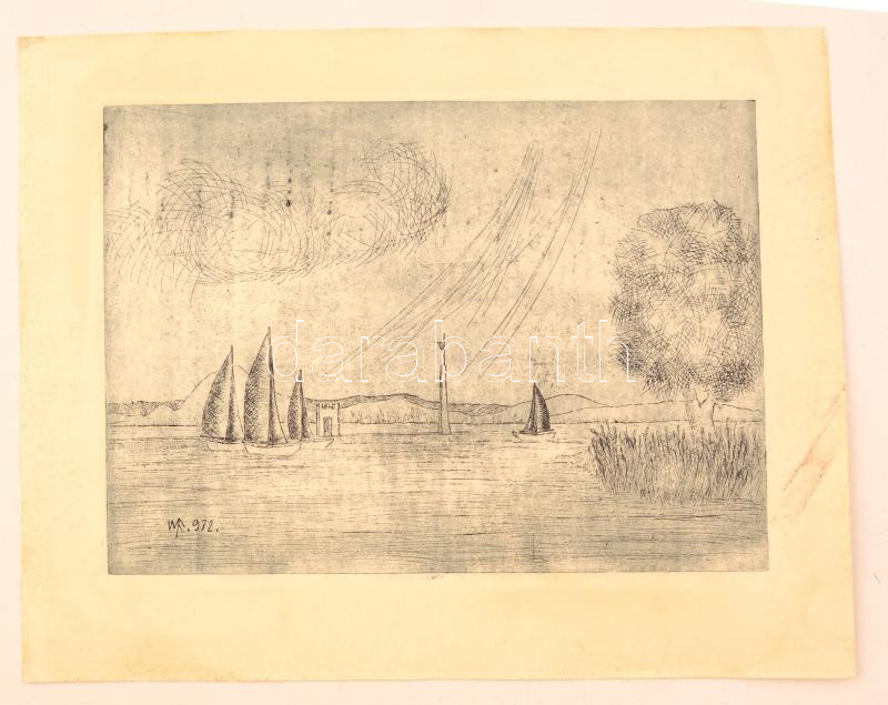 WF jelzéssel: Vitorlások. Rézkarc, papír, foltos, 20×27 cm