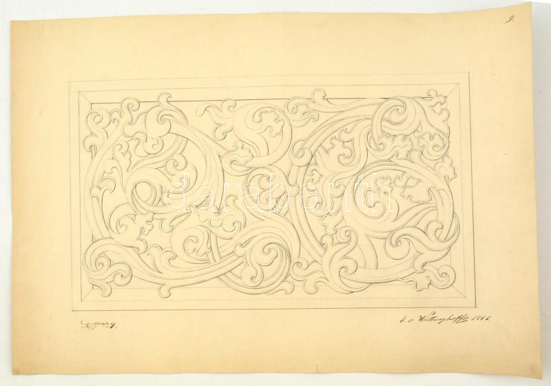 Wiettinghoff Evald (1826-1882): Épület dísz vázlat 1865. Ceruza, papír...