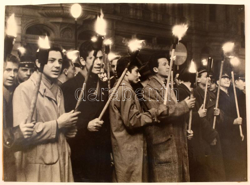cca 1960 Dr. Toldi Anikó: Fáklyásmenet, feliratozott vintage fotóművés...