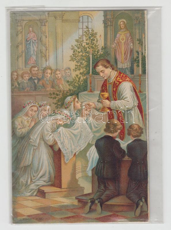 1892 Elsőáldozás, litho szentkép, 10x7 cm