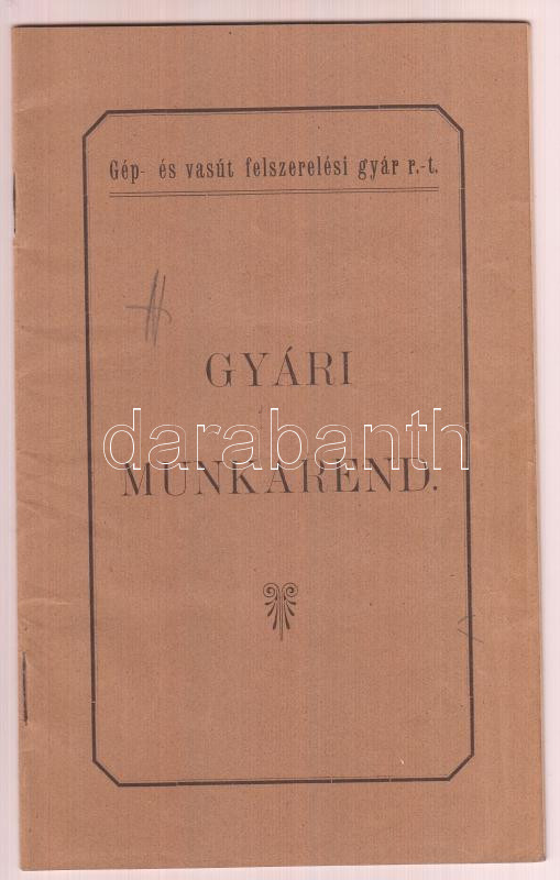 https://www.darabanth.com/en/282-Online-auction/282.0/Other-collectibles/Printed-Materials~10/1908-Gyari-munkarend-Gep--es-vasut-felszerelesi-gyar-r-t-Kiadoi-papirkotes-egy-helyen~II1459590