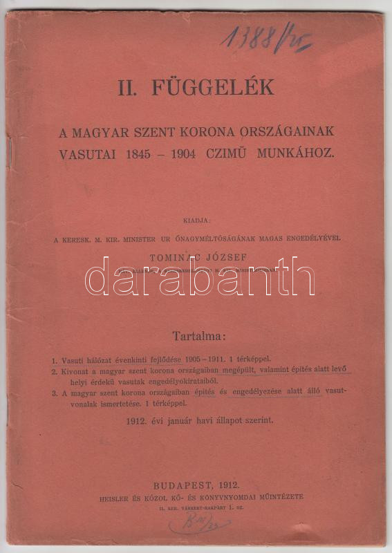 https://www.darabanth.com/en/282-Online-auction/282.0/Other-collectibles/Printed-Materials~10/1912-Bp-Fuggelek-a-Magyar-Szent-Korona-Orszagainak-vasutai-1845-1904-cimu-munkahoz-kiadja-T~II1457509