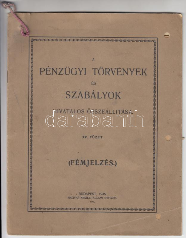 https://www.darabanth.com/en/282-Online-auction/282.0/Other-collectibles/Printed-Materials~10/1935-A-penzugyi-torvenyek-es-szabalyok-hivatalos-osszeallitasa--femjelzes-XV-fuzet-~II1457495