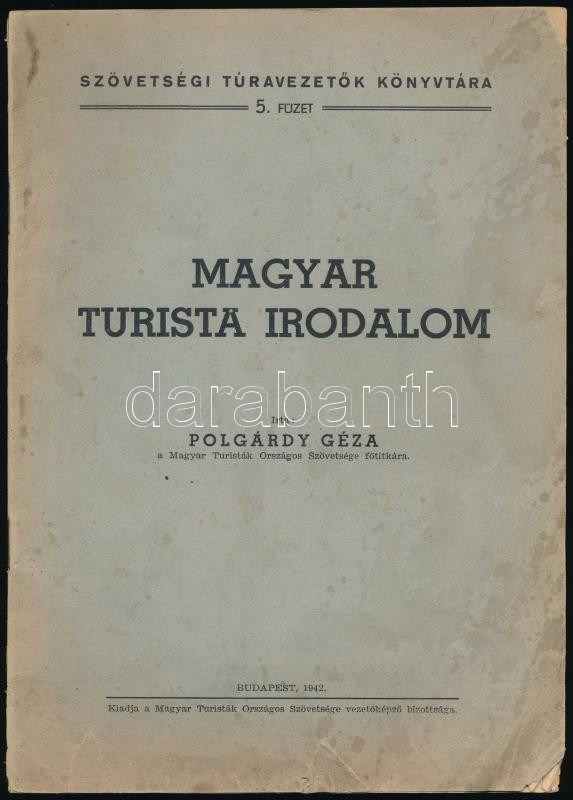 https://www.darabanth.com/en/282-Online-auction/282.0/Other-collectibles/Printed-Materials~10/1942-Polgardy-Geza-Magyar-turista-irodalom-Szovetsegi-turavezetok-Konyvtara-5-fuzet-34p~II1455390