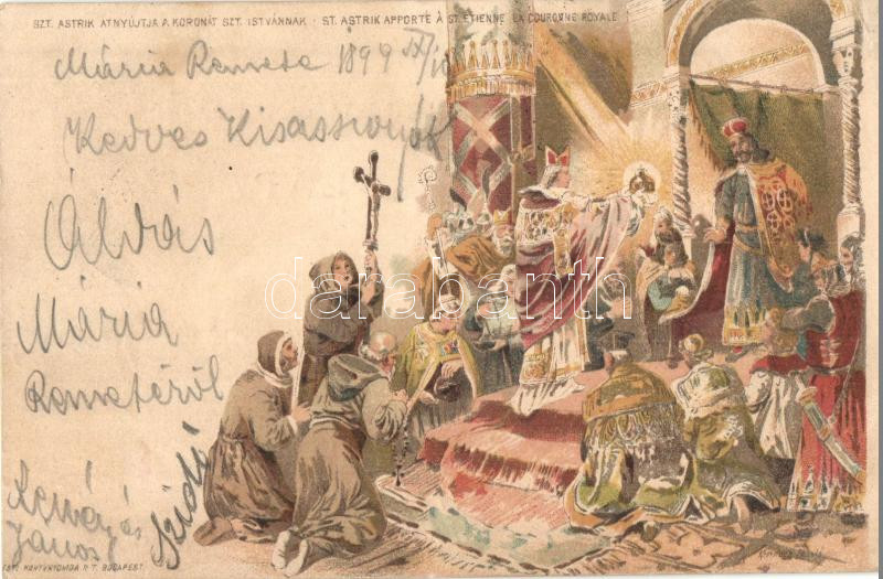 1899 Szent Astrik átnyújtja a koronát Szent Istvánnak, 2 Kr Ga. s: Kimnach László litho