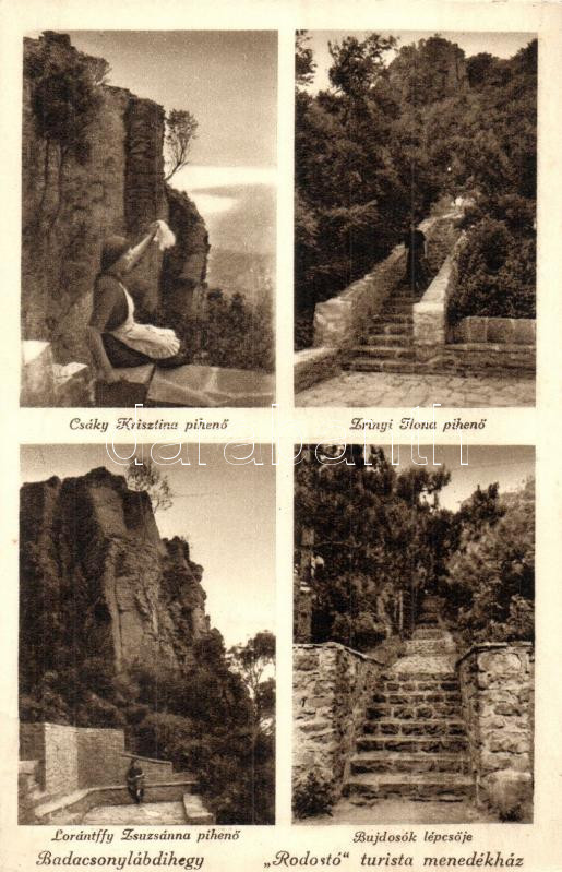 Badacsonylábdihegy; 4 képes mozaiklap, Rodostó menedékház, Zrínyi Ilon...