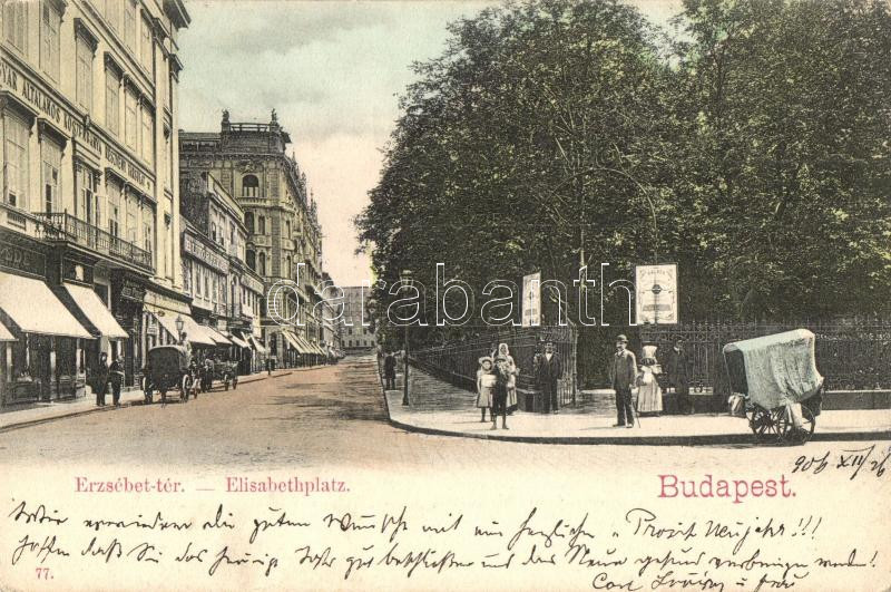 Budapest V. Erzsébet tér, park, bútorüzlet, Magyar Általános Kőszénbán...