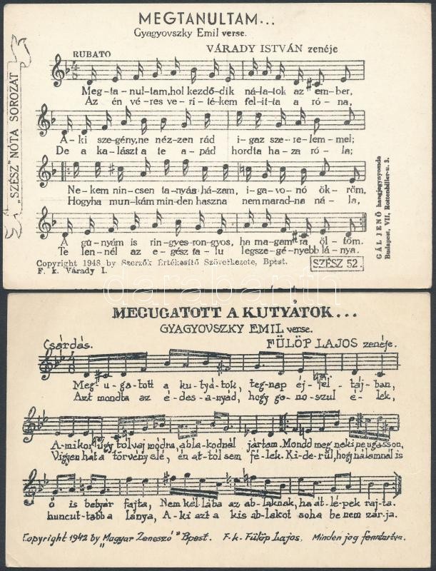 8 db RÉGI kottás képeslap / 8 pre-1945 motive postcards; sheet music