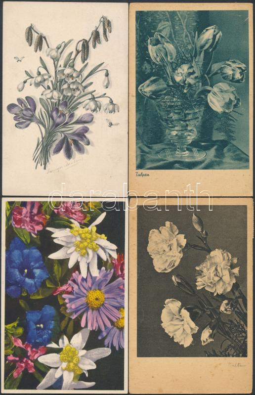 Kb. 110 db RÉGI virág motívumos képeslap, pár lithoval, vegyes minőség / Cca. 110 pre-1945 flower motive cards, some litho, mixed quality