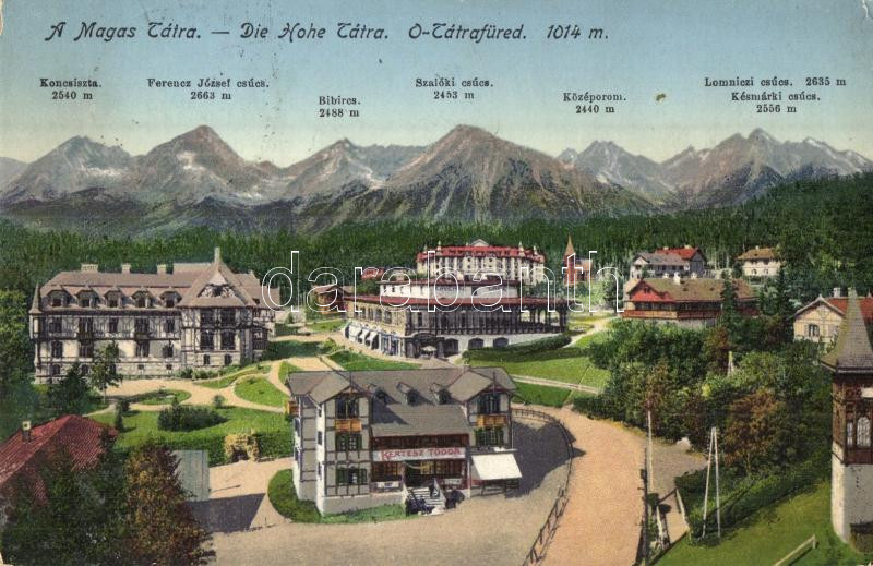 Ótátrafüred, Stary Smokovec; Látkép, kávéház, Kertész Tódor üzlete / g...