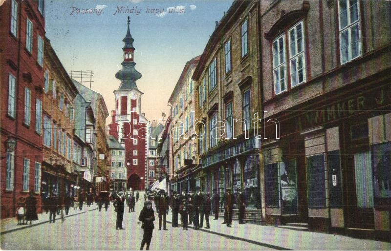https://www.darabanth.com/en/282-Online-auction/282.0/Postcards/Slovakia~200009/Pozsony-Pressburg-Bratislava-Mihaly-kapu-utca-H-Wimmer-uzlete-street-shop-kopott-sarok-~II1455491