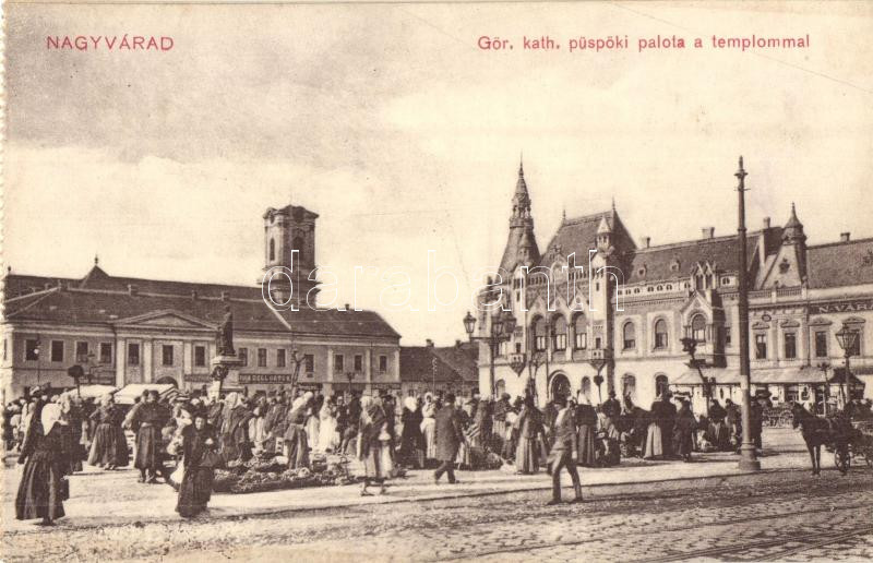 Nagyvárad, Oradea; Görög katolikus püspöki palota és templom, piac / G...