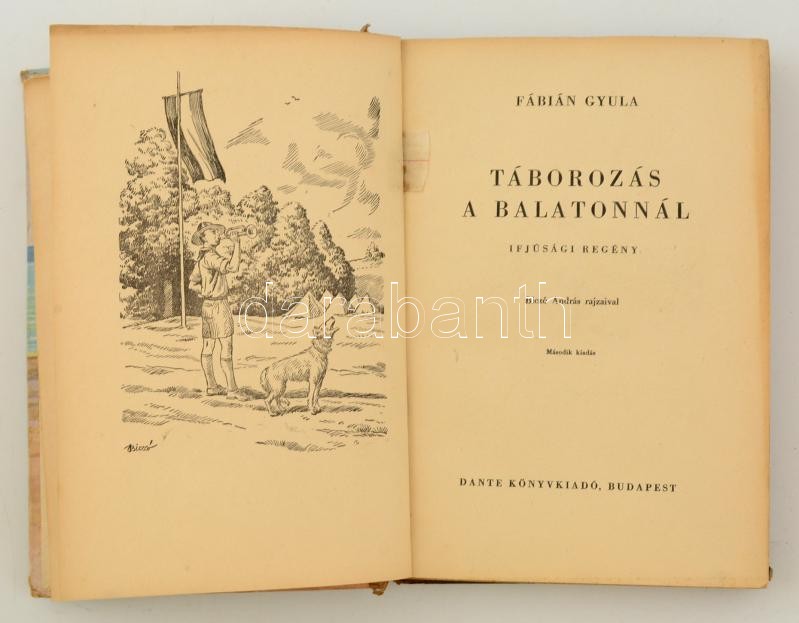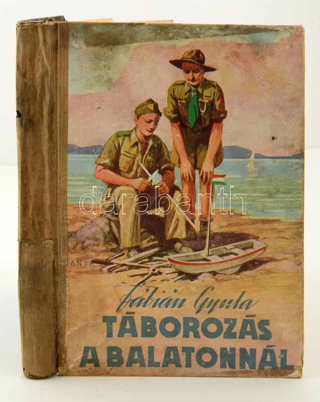 Fábián Gyula: Táborozás a Balatonnál. Biczó András rajzaival. Második kiadás. Bp., 1944, Dante. Kiadói félvászon kötés, megviselt állapotban, ázásnyomokkal és penészfoltokkal.