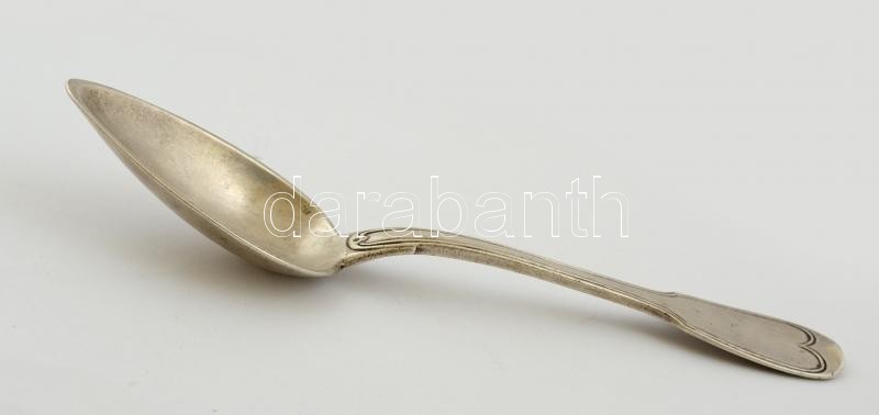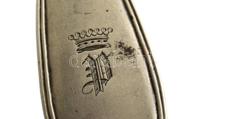Antik ezüst (Ag.) kanál monogrammal, jelzett, h: 21 cm, nettó 87g