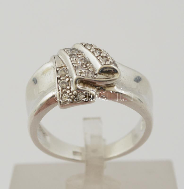 Ezüst(Ag) szintetikus kövekkel díszített gyűrű, jelzett, méret: 53, br...