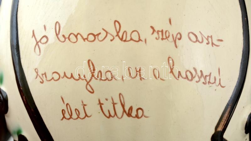 Karcagi Miska kancsó, kézzel festett kerámia, jelzett, minimális lepat...