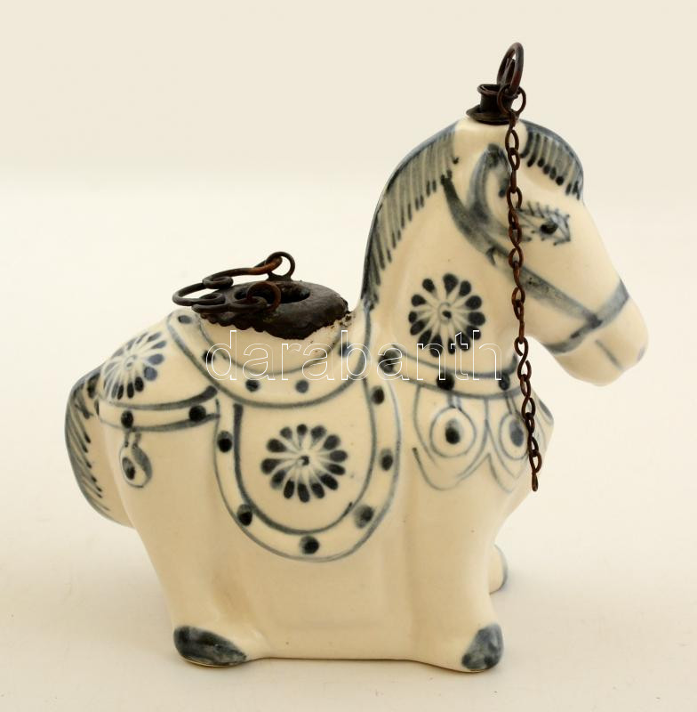 Ló figurás gyertyatartó, máz alatti festéssel, m:12 cm