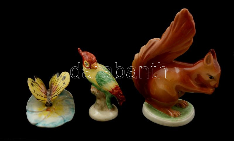 Vegyes kerámia és porcelán figurák, 3 db, kézzel festettek, hibátlanok
