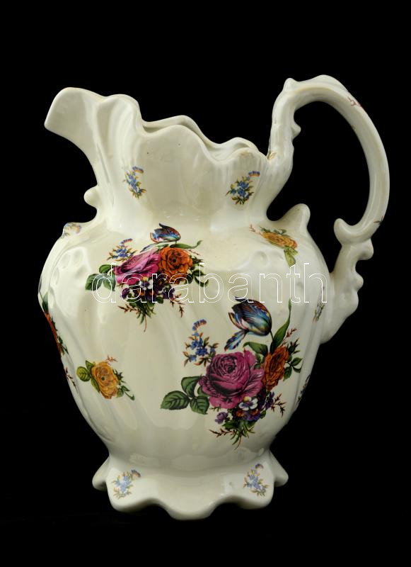 Virágmintás fajansz vizes kancsó, matricás, hibátlan, jelzés nélkül, m...
