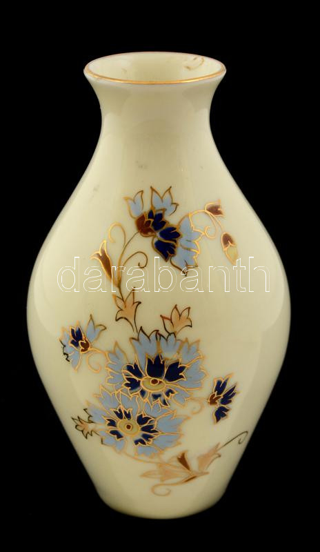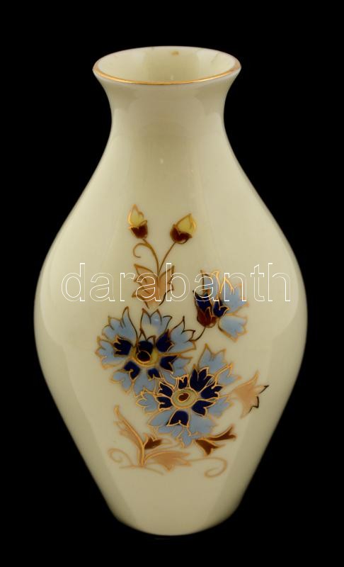 Zsolnay búzavirágmintás porcelán váza, kézzel festett, jelzett, hibátlan, m: 12 cm