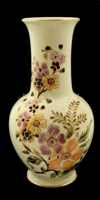 Zsolnay virágmintás porcelán váza, kézzel festett, jelzett, hibátlan, ...