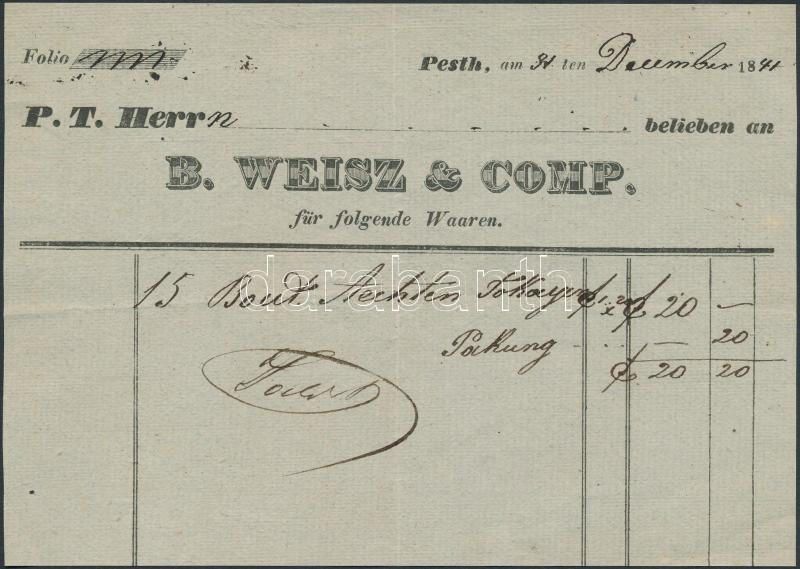 1841 Pest, B. Weisz & Comp. fejléces számla