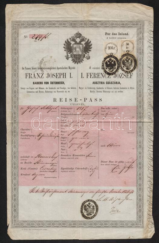 https://www.darabanth.com/en/283-Online-auction/283.0/Other-collectibles/Documents~17/1858-Utlevel-belfoldre-60kr-okmanybelyeggel-Reise-Pass-for-inland~II1472041