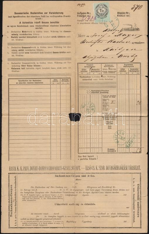 1876 DDSG fuvarlevél Budapest - Vác / DDSG bill of freight