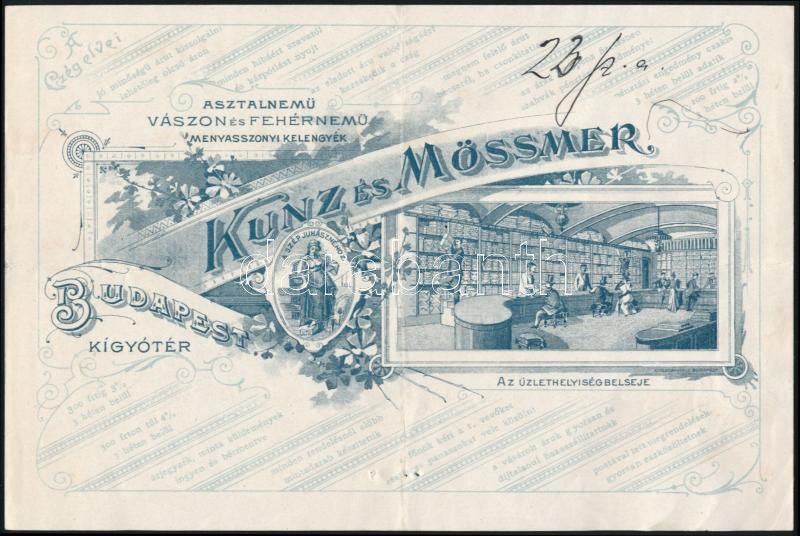 1898 Budapest, Kígyó tér (Ferenciek tere), Kunz és Mössmer Asztalnemű... https://www.darabanth.com/en/283-Online-auction/283.0/Other-collectibles/Documents~17/1898-Budapest-Kigyo-ter-Ferenciek-tere-Kunz-es-Mossmer-Asztalnemu-vaszon-es-fehernem~II1472075