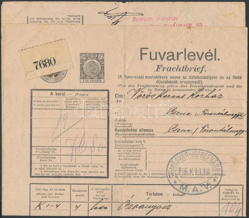 https://www.darabanth.com/en/283-Online-auction/283.0/Other-collectibles/Documents~17/1916-Vasuti-fuvarlevel-TEMESVAR-JOZSEFVAROS-MAV~II1466438