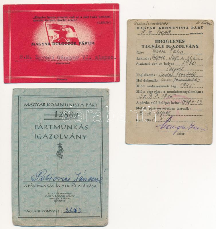 https://www.darabanth.com/en/283-Online-auction/283.0/Other-collectibles/Documents~17/cca-1950-3-db-kulonfele-MKP-tagsagi-igazolvany-koztuk-Rakos-Matyas-Egyedi-Gepgyar-is~II1464858