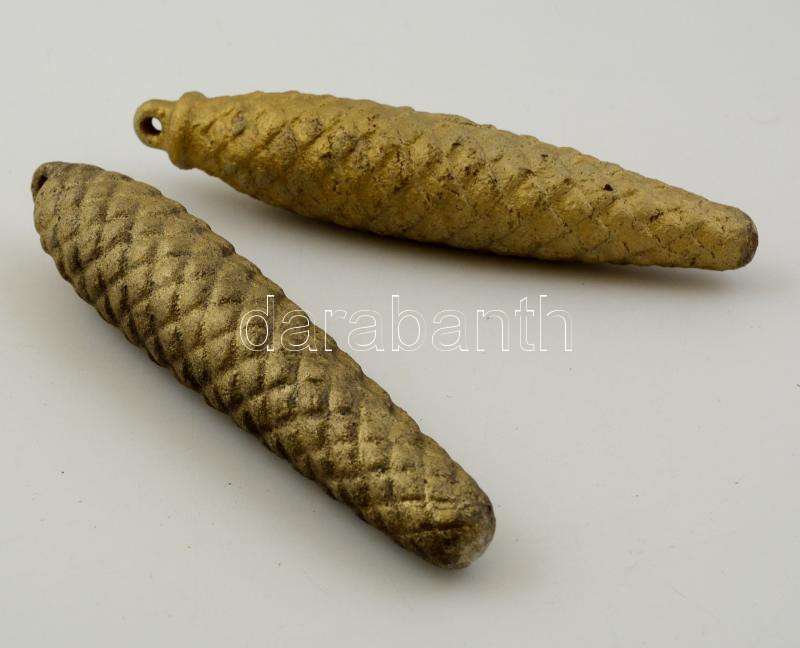 2 db aranyszínű fém órasúly, h: 15 cm