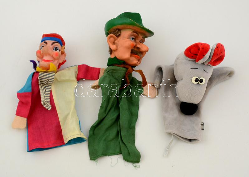 3 db kézre húzható bábfigura(egér, vadász, varázsló), m: 10-12 cm