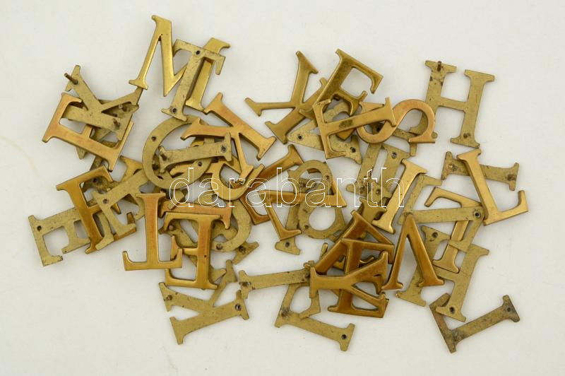 45 db öntött réz betű forma, több ismétlődik, 3 cm