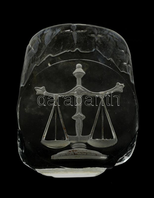 Mérlegmotívumos üveg levélnehezék, apró kopásnyomokkal, 13,5×10,5×2,5 ...