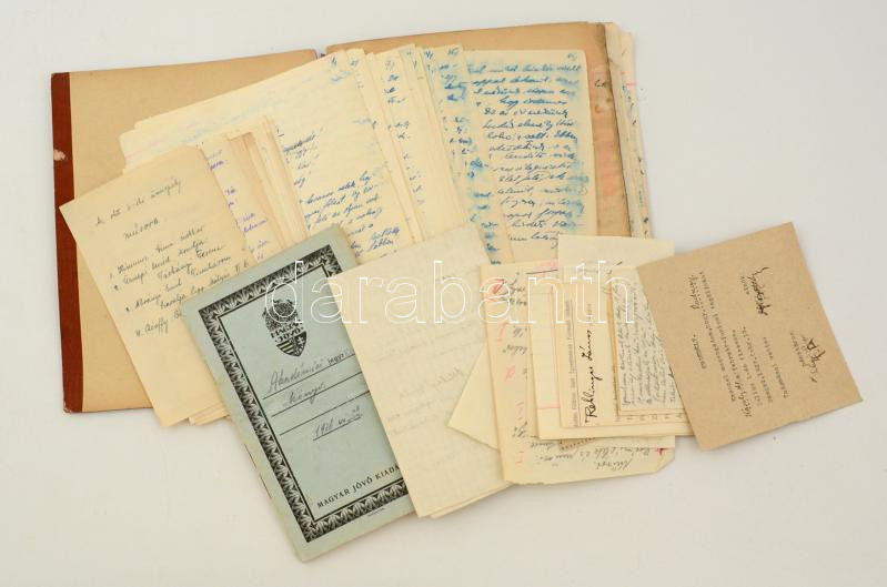 1926-1929 az Ortutay Gyula és mások által alapított "Magyar Tudományos Akadémia" kb. egy füzet terjedelmű jegyzőkönyve illetve dokumentumai (fizetési engedélyek, tagkönyvek) + a gimnáziumi önképzőkör 1928-1929-ben Ortutay által vezetett jegyzőkönyve, kissé vetemedett állapotban, több helyütt elmosódó lapokkal