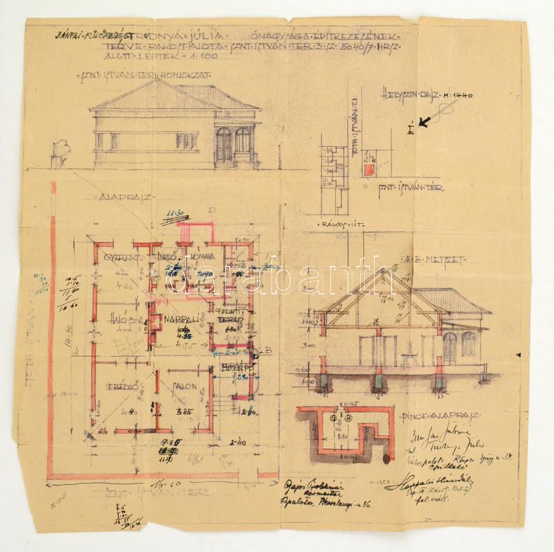 cca 1937 Bánfai Fülöpné építkezésének(rákospalotai kúria) terve, szaka...