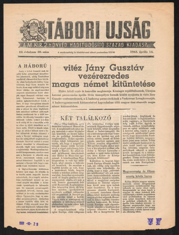 https://www.darabanth.com/en/283-Online-auction/283.0/Other-collectibles/Military~26/1943-Tabori-Ujsag-1943-arpilis-14-III-evf-30-szam-A-M-Kir-2-Honved-Haditudosito-~II1466052