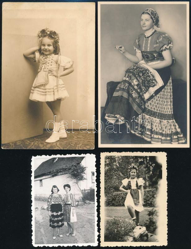 cca 1930 8 db magyar népviseletes fotó, fotólap, különböző méretben