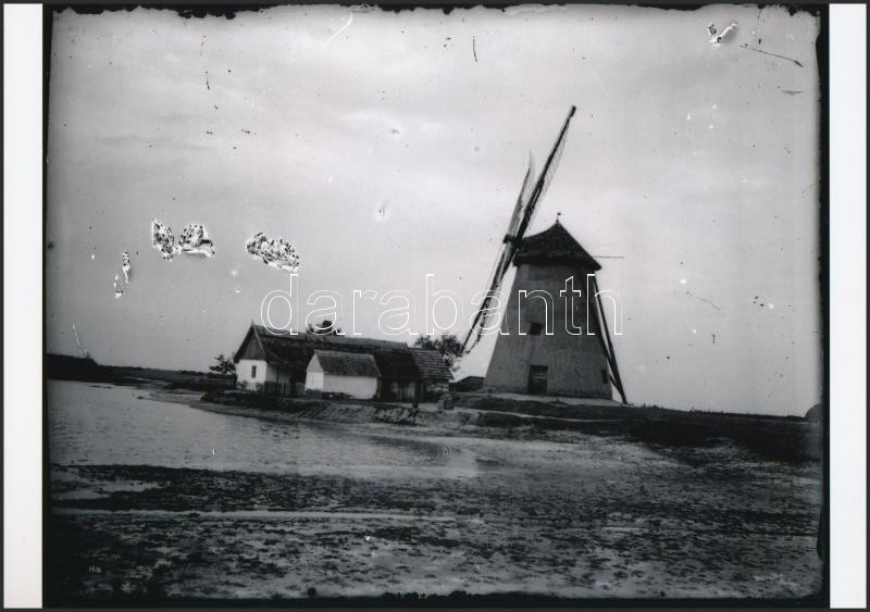 Description: cca 1936 Szélmalom Bács-Kiskun megyében, Lőcsei Árpád (?-?) kecskeméti vándorfényképész hagyatékában őrzött vintage üveglemezes negatív mai nagyítása, 18x22,5 cm