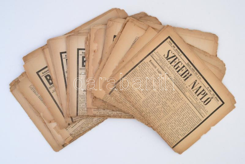 1894 Kossuth Lajos halálával foglalkozó számok, Budapesti Hírlap, valamint egy Szegedi napló, kb. 12 db, rossz állapotban.