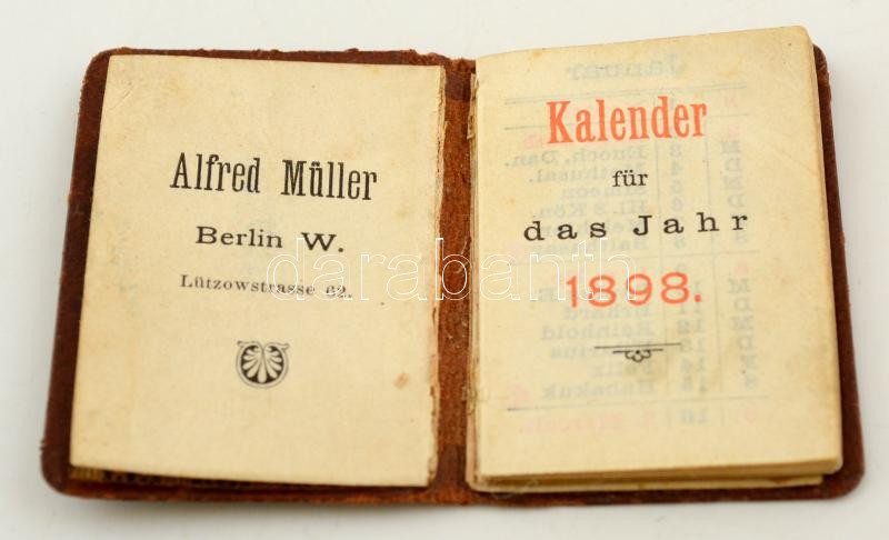1898 Német nyelvű mini tárcanaptár bőr kötéssel