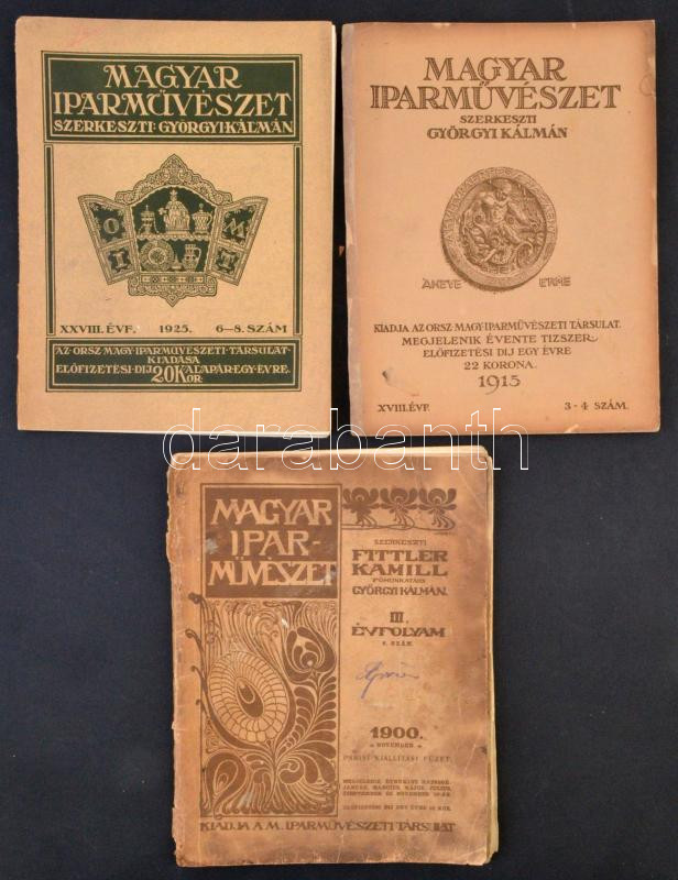 1900-1925 A Magyar Iparművészet c. újság 3 száma különböző évtizedekbő...