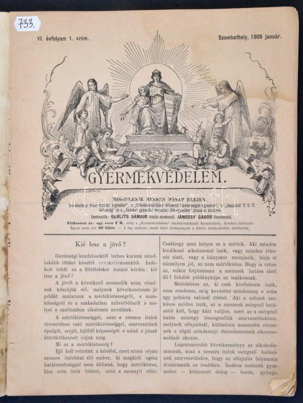 1909 Szombathely, A Gyermekvédelem című folyóirat VI. évfolyama egybekötve