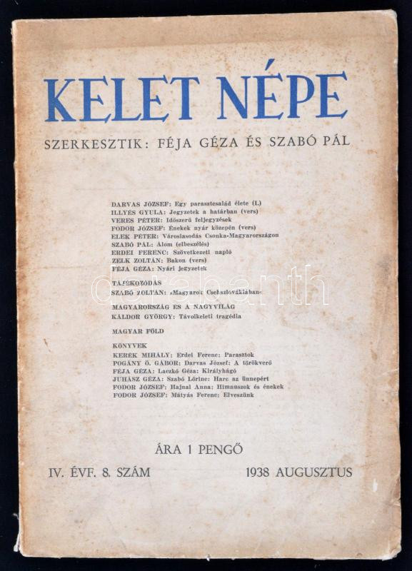 1938 Kelet Népe IV. évfolyam 8. szám, szerk. Féja Géza és Szabó Pál