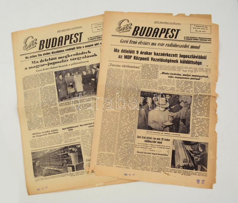 1956 Esti Budapest. MDP Budapesti Pártbizottságának és a Budapest Fővá... https://www.darabanth.com/en/283-Online-auction/283.0/Other-collectibles/Printed-Materials~28/1956-Esti-Budapest-MDP-Budapesti-Partbizottsaganak-es-a-Budapest-Fovaros-Tanacsanak-lapja-~II1466343