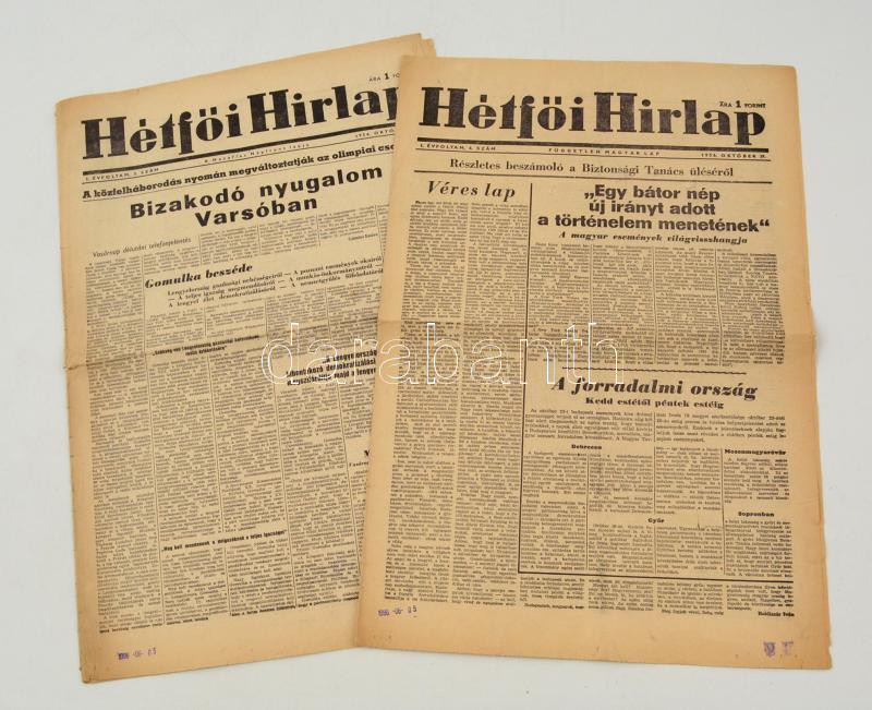 1956 Hétfői Hírlap. A Hazafias Népfront lapja, 2 szám, 1956. október 2... https://www.darabanth.com/en/283-Online-auction/283.0/Other-collectibles/Printed-Materials~28/1956-Hetfoi-Hirlap-A-Hazafias-Nepfront-lapja-2-szam-1956-oktober-22-29-I-evfolyam-3~II1466377